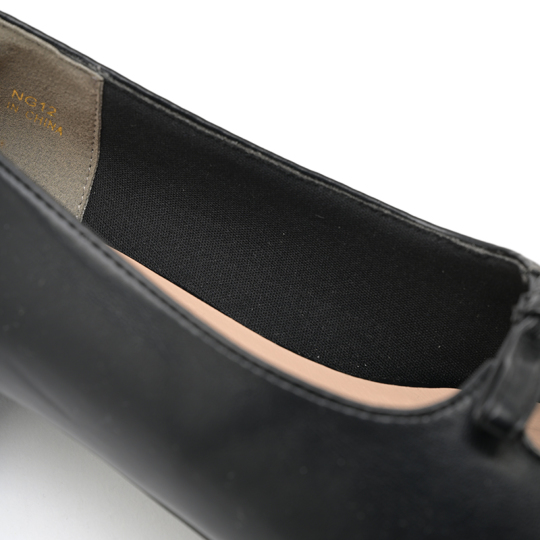 足首に近い甲側のリボン下はゴムにしているので、甲高さんにも安心です。